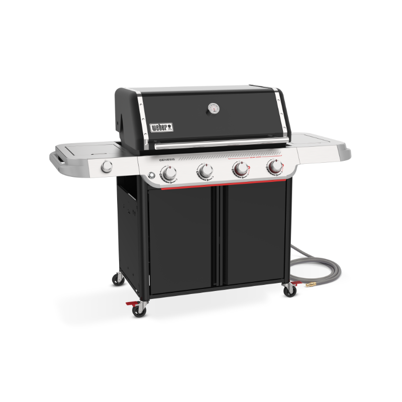 Experience powerhouse performance and precision with the upgraded Weber Genesis E-435 Gas Barbecue. This premium 4-burner outdoor entertaining barbecue is perfect for large families or anyone looking for plenty of space, power and cooking versatility. Featuring a Sear Zone, side burner, and Weber Crafted griddle, it’s sure to be the centrepiece of your backyard. An ultra-hot Sear Zone, powered by two dual-row PureBlu burners, reaches ~400 degrees C for impressive restaurant-quality searing. The spacious cooking area heats up fast and evenly, thanks to the premium PureBlu burners. Heavy-duty porcelain-enamelled, cast-iron cooking grills flip over to fit Weber Crafted cookware, giving you ultimate cooking versatility by transforming your barbecue with a griddle, pizza stone, veggie basket, and more . Plus, with Weber Works interchangeable accessories that drop in or snap onto the side tables, you can store, carry, prep, and serve seamlessly.